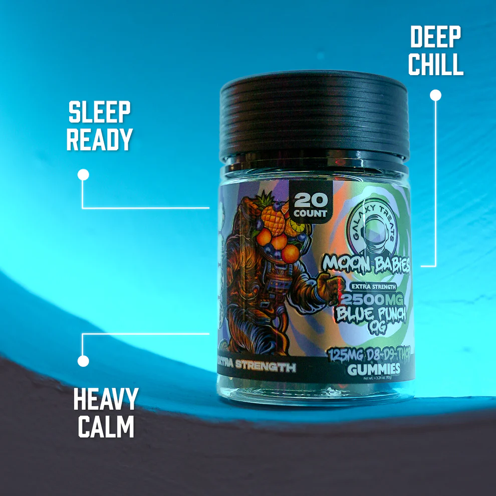 Discover a bold new level of elevation with Moon Babies Blue Punch D8 D9 THCP Extra Strength Gummies. Crafted for experienced enthusiasts who appreciate both flavor and potency, these gummies combine a vibrant blue punch taste with an advanced cannabinoid blend. From the first bite, you’ll enjoy a smooth texture, rich fruity notes, and a powerful lift that transforms ordinary moments into something extraordinary.